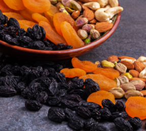 Fáceis de carregar na bolsa, as frutas secas são cheias de fibras e vitaminas.